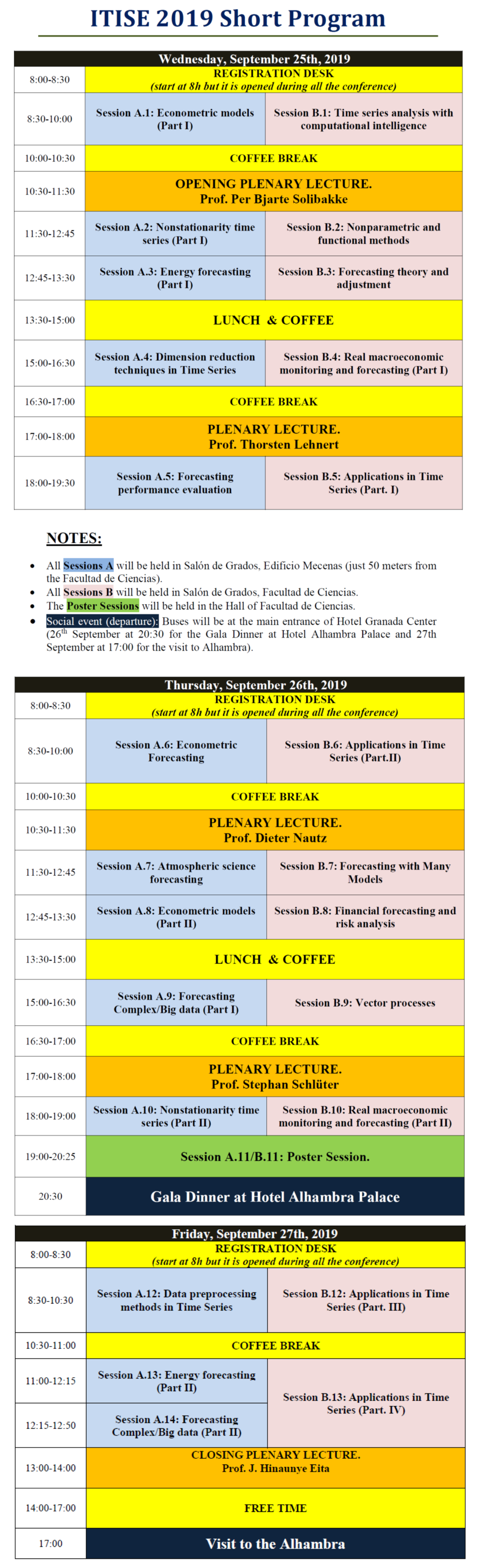 Please, find attached the ITISE PROGRAM. Please, take into account that time used is the local time in Gran Canaria, that it is different from Madrid, because it is UTC +01:00. Please, take into account that this program is tentative and, therefore, it could be modified or altered depending on late registrations and presentations/cancelations. Click Presentation Instructions for more information about presentation types.